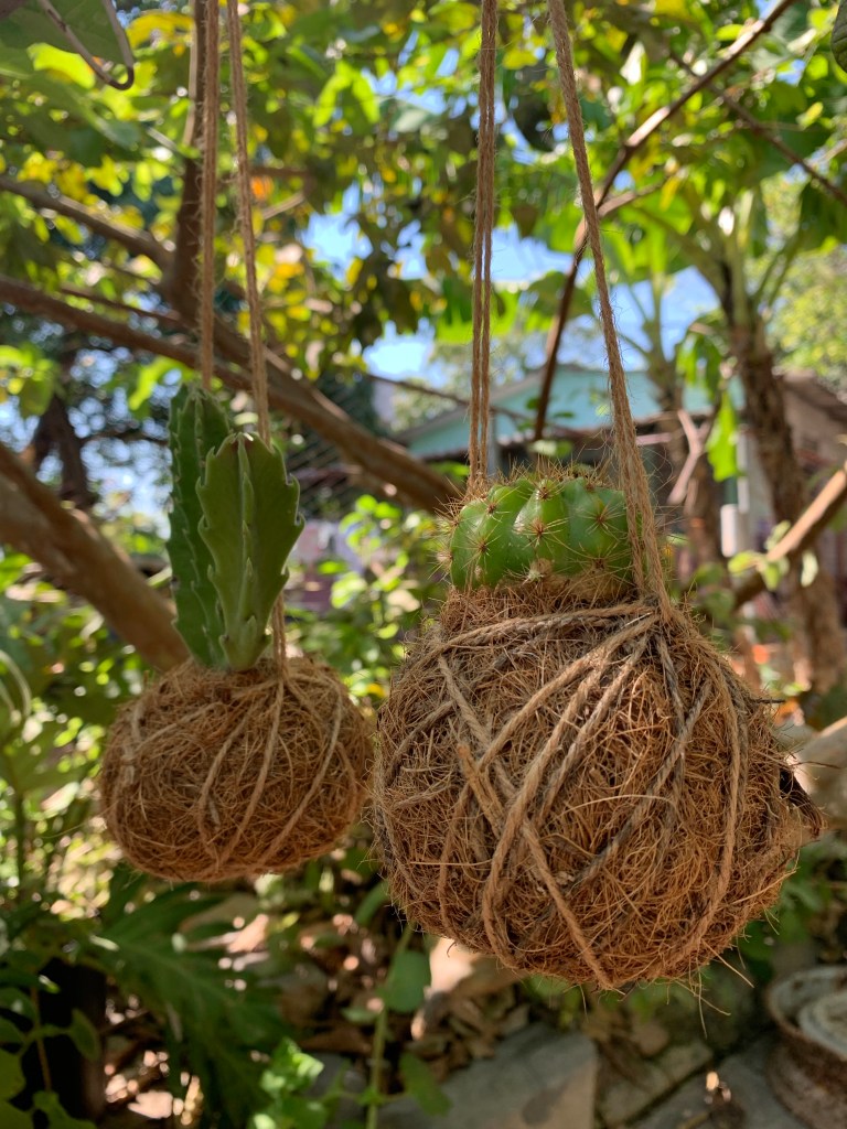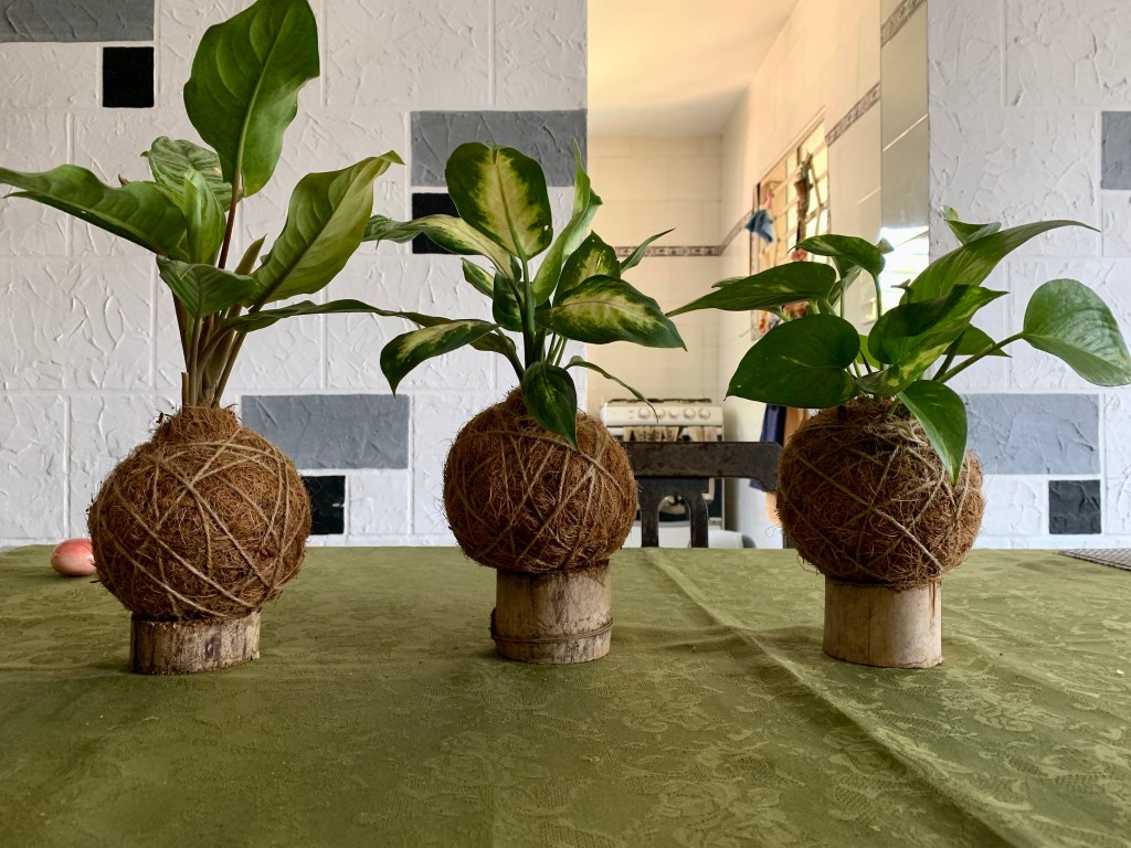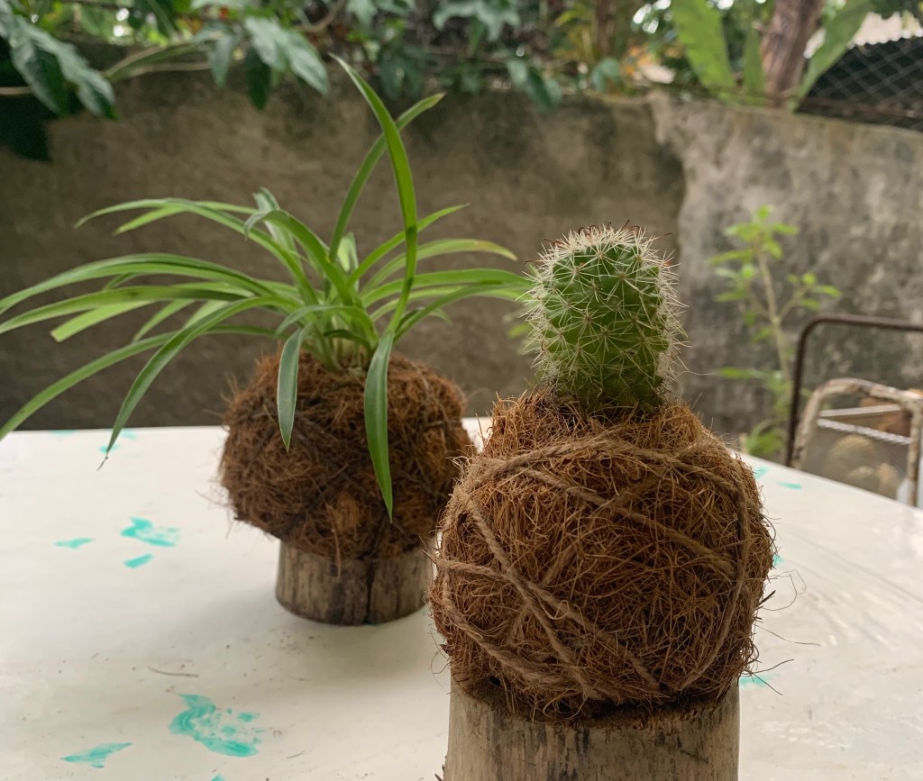Kokedama o “kokodama”, no sabemos cómo llamarles porque las de Estación Los Pinos están hechas con fibra de coco.